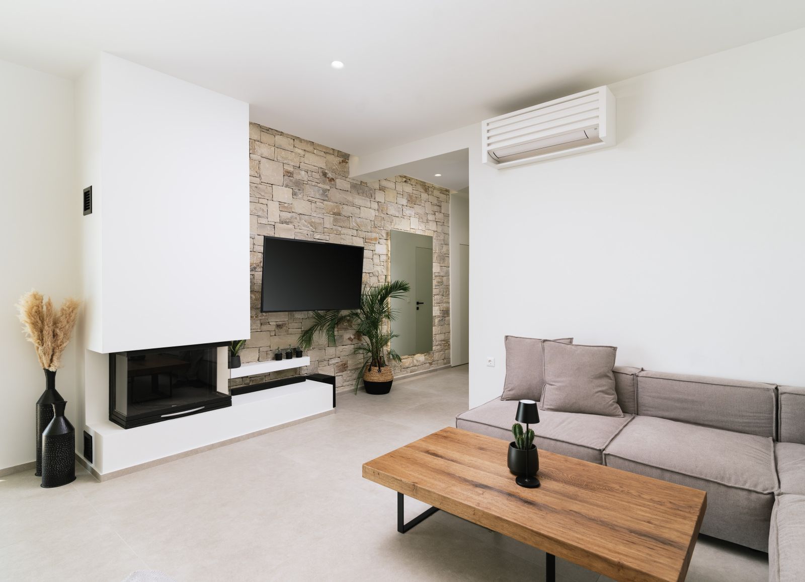 Each room has an air-condition system for Cold and for Hot and in the living room is also an energy fireplace that can easy heat all the house.