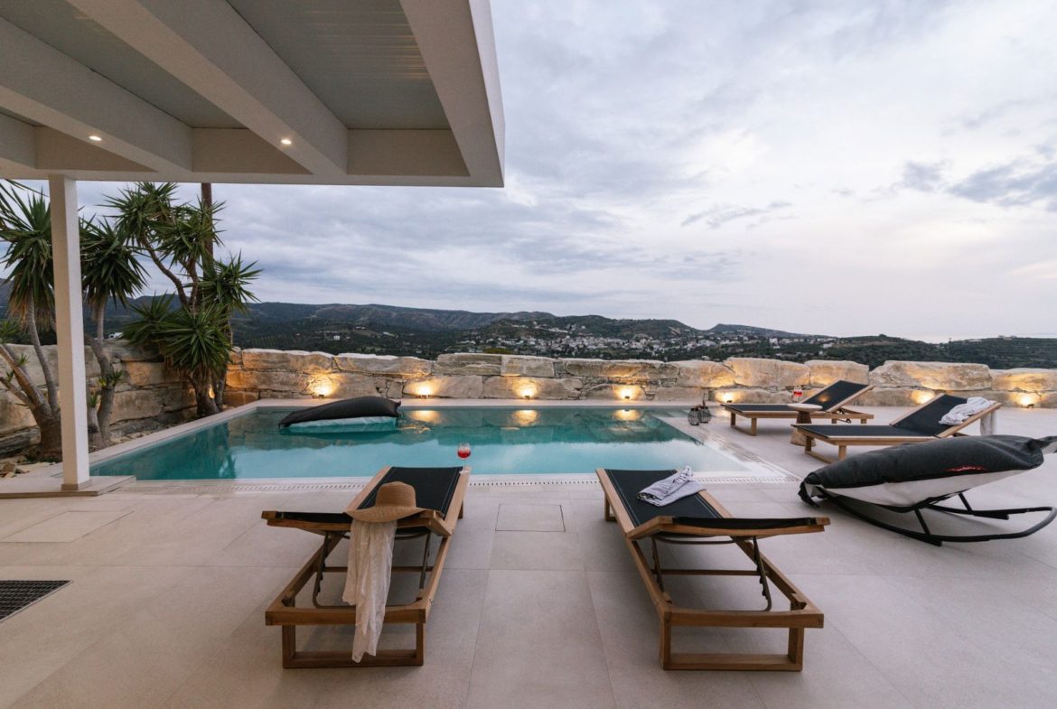 This amazing private Villa is build on a hill in a peaceful location with sea and mountain views.