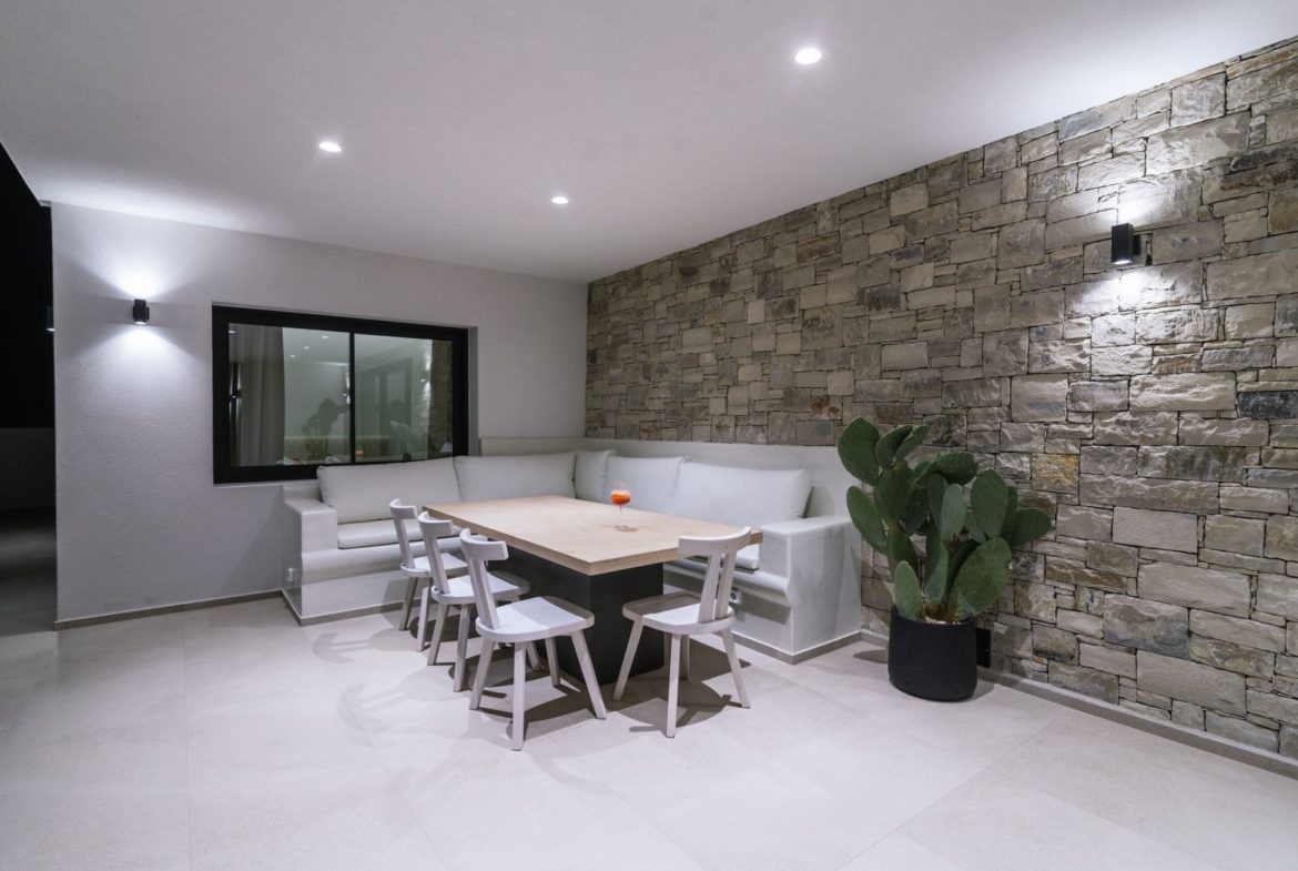 The house from outside has a special isolation for the temperature and after that an extra hand of plaster for the water isolation.