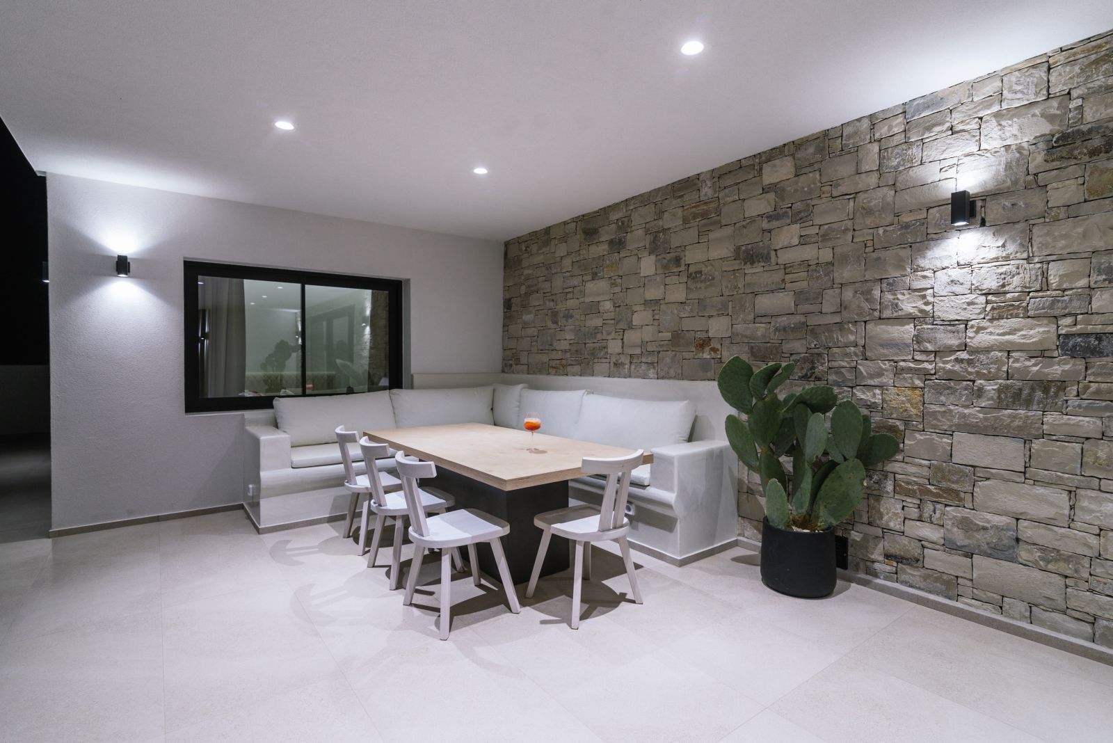 Barbecue area with a completely autonomous kitchen that offers grill, washbasin, fridge and a gas system for cooking.