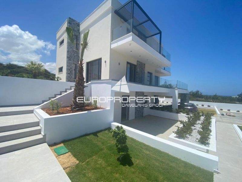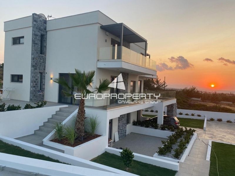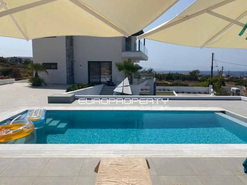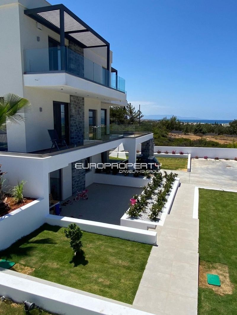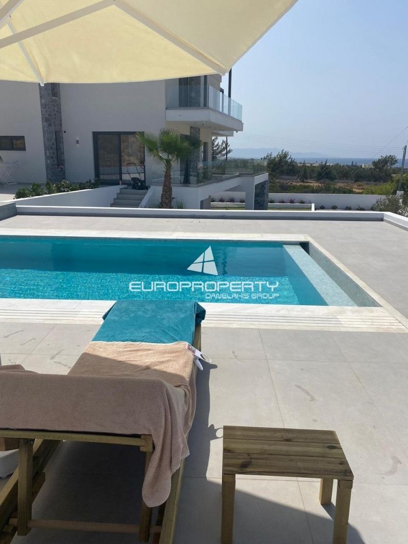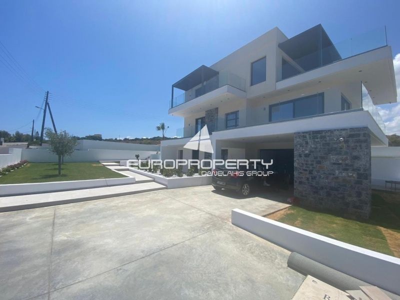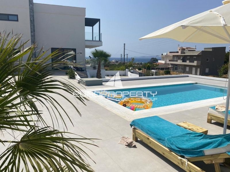 Property Code: 1-351 – Villa FOR SALE in Chersonisos Anissaras for € 1.000.000 . This 270 sq. m. Villa consists of 2 levels and features 6 Bedrooms, 2 Livingrooms, 2 Kitchens, 5 bathrooms . The property also boasts Heating system: Air conditioner, tiled floor, unobstructed view, Window frames: Aluminium, Armourplated door, parking, garden, swimming pool. The building was constructed in 2019 Plot area: 900 s.q. . Building Energy Rating: A Distance from sea 660 meters, Distance from the city center: 2000 meters, Distance from nearest airport: 24000 meters, In an amazing location with an endless view of the island of “Dia” and the sea of Anisaras, Newly built Villa with very good details and materials 660 meters from the beach of Anisaras. It consists of three levels, ground floor which is an independent space and can be used separately as a guest house. It has a kitchen, living room, bedroom, bathroom, storage and an internal staircase for communication with the rest of the house, which can be isolated. Also on the ground floor is the internal garage, which also has internal access to the rest of the house. On the first floor there is a living room, kitchen, bathroom, bedroom, verandas with sea view and on the second floor three bedrooms with large verandas also overlooking the sea. Outdoors there is a swimming pool in an airy area overlooking the sea, and a beautiful garden. The price does not include the furniture.