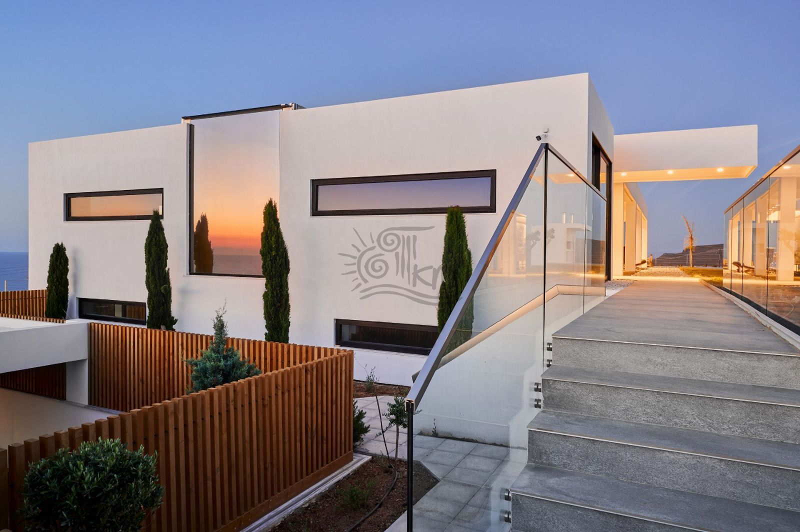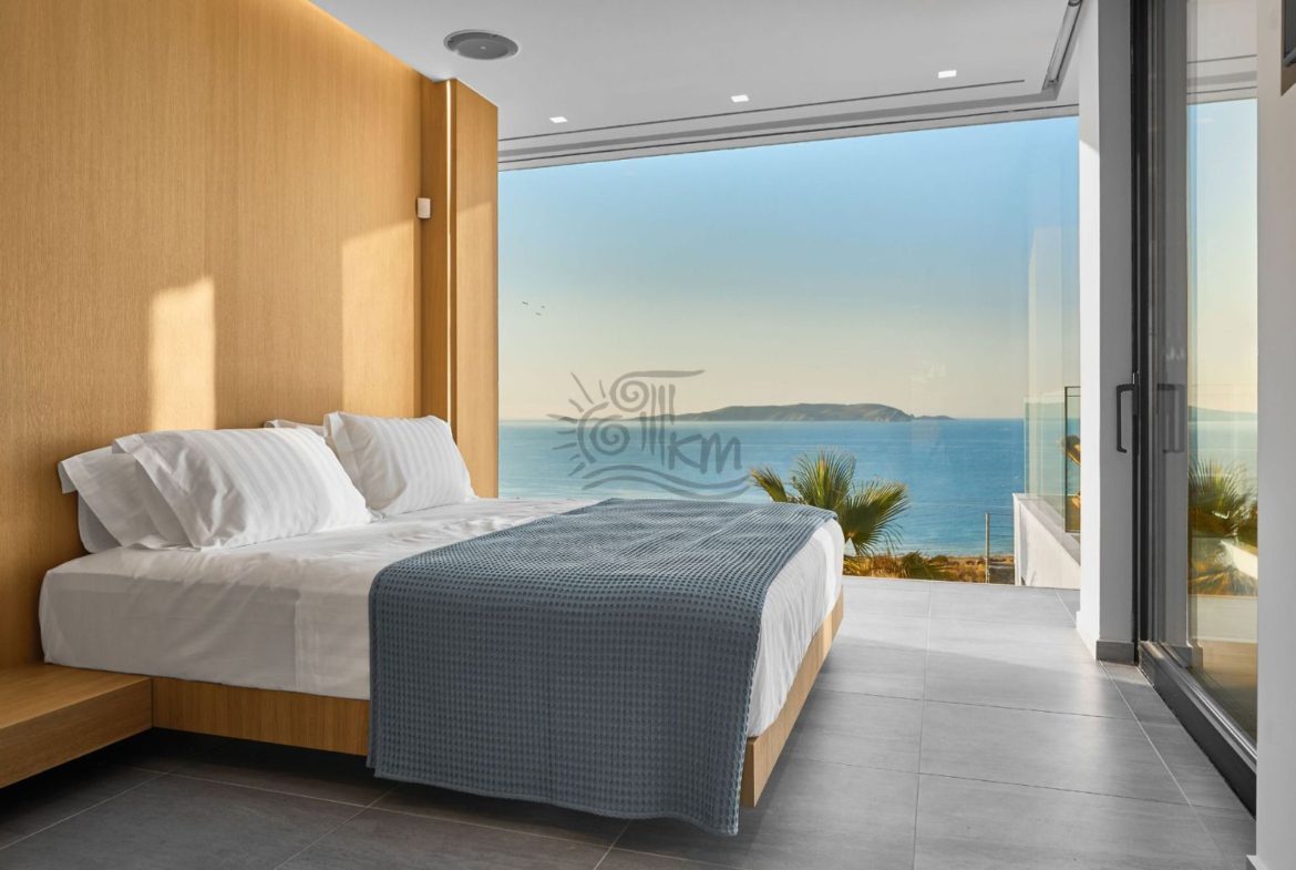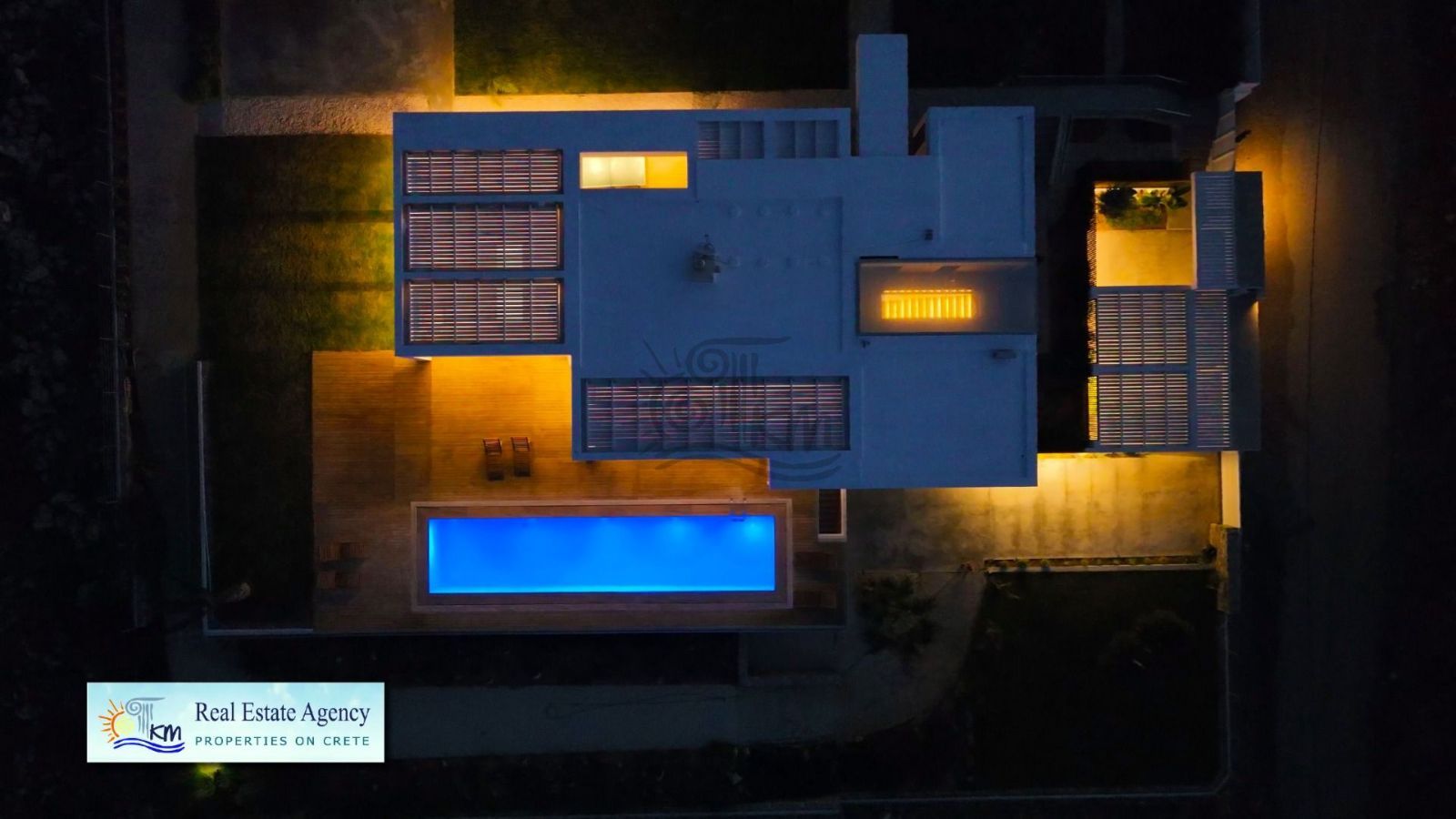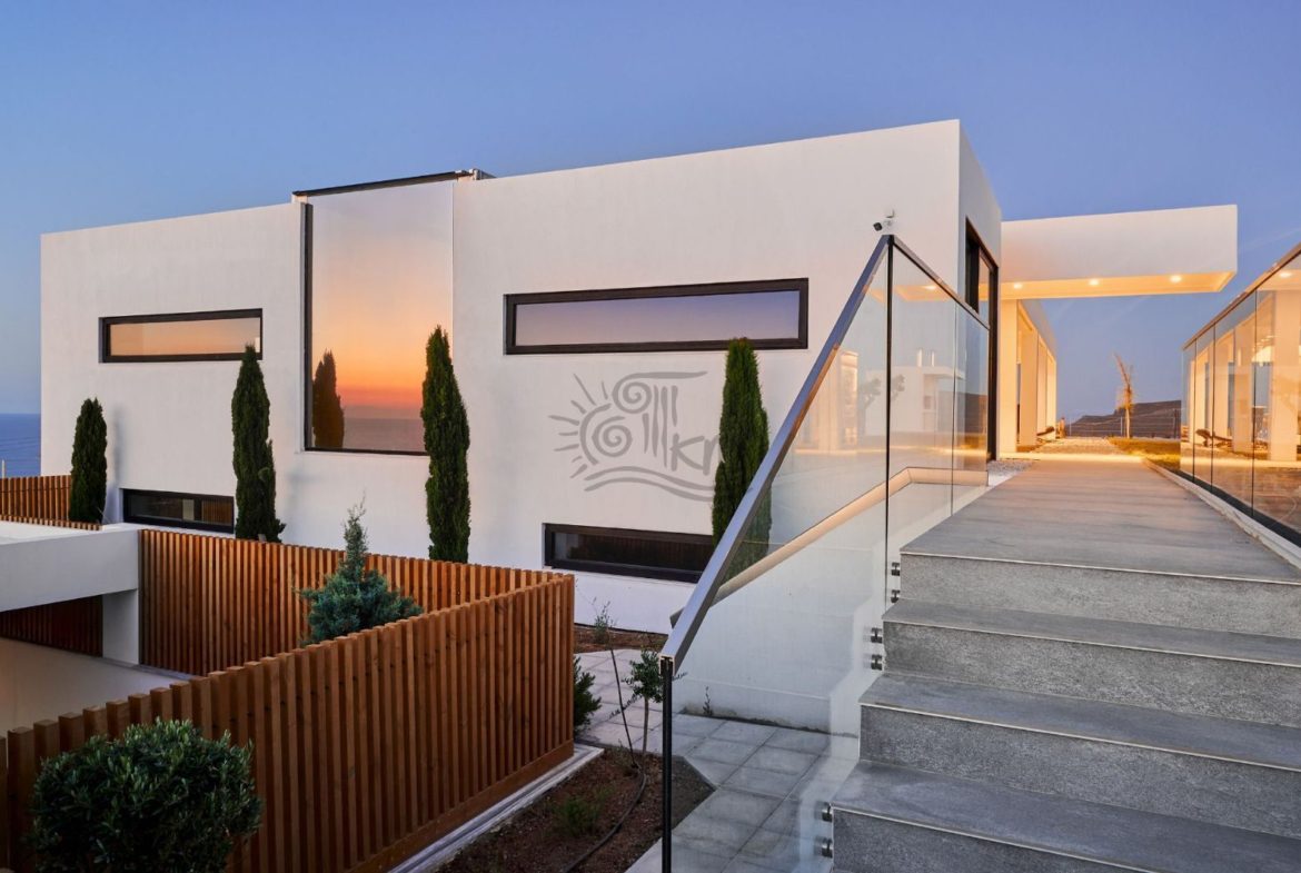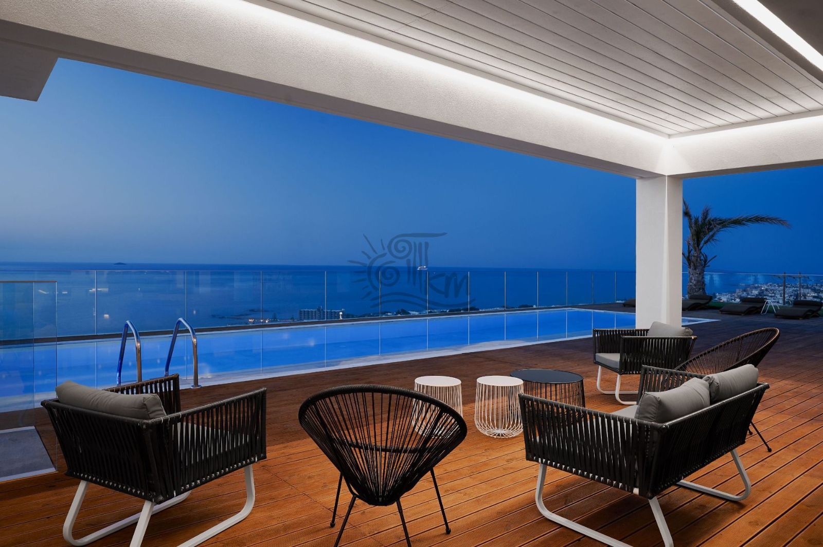 Heraklion. For sale is a 350 sq m ultra-luxurious villa on a 4,000 sq m plot with a unique unobstructed view of the sea. Specifically, it offers complete privacy and is just 8 kilometers from Heraklion international airport and just 2,500 meters from a sandy beach. It is arranged on two levels and has four master bedrooms, the largest of which has a unique view between the pool and the sea. On the first level, there is the open space with the kitchen and the fireplace, while there are the two bedrooms, the imposing patio from which the house is constantly illuminated and very large verandas with direct access to the pool and the surrounding area. In the landscaped surrounding area there is an outdoor dining area with a canopy, a garden with trees and shrubs, aromatic plants of Crete and a barbecue with a wood-burning oven. On the lower level there are two more bedrooms, a gym, a laundry room, with direct access to the gardens, the plot and the closed parking spaces. Finally, the house offers autonomous heating with a heat pump, a 50 sq m heated swimming pool with a heat pump, an alarm and monitoring system, three closed parking spaces, a perimeter stone fence, a lush landscaped garden, trees, shrubs, flowers and aromatic plants. It is an excellent choice either for home ownership or for tourist exploitation.