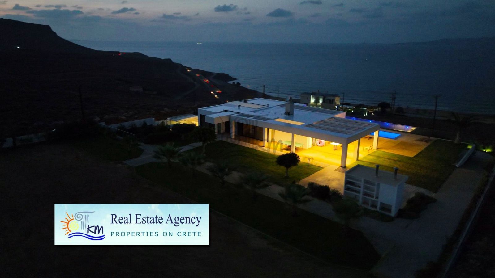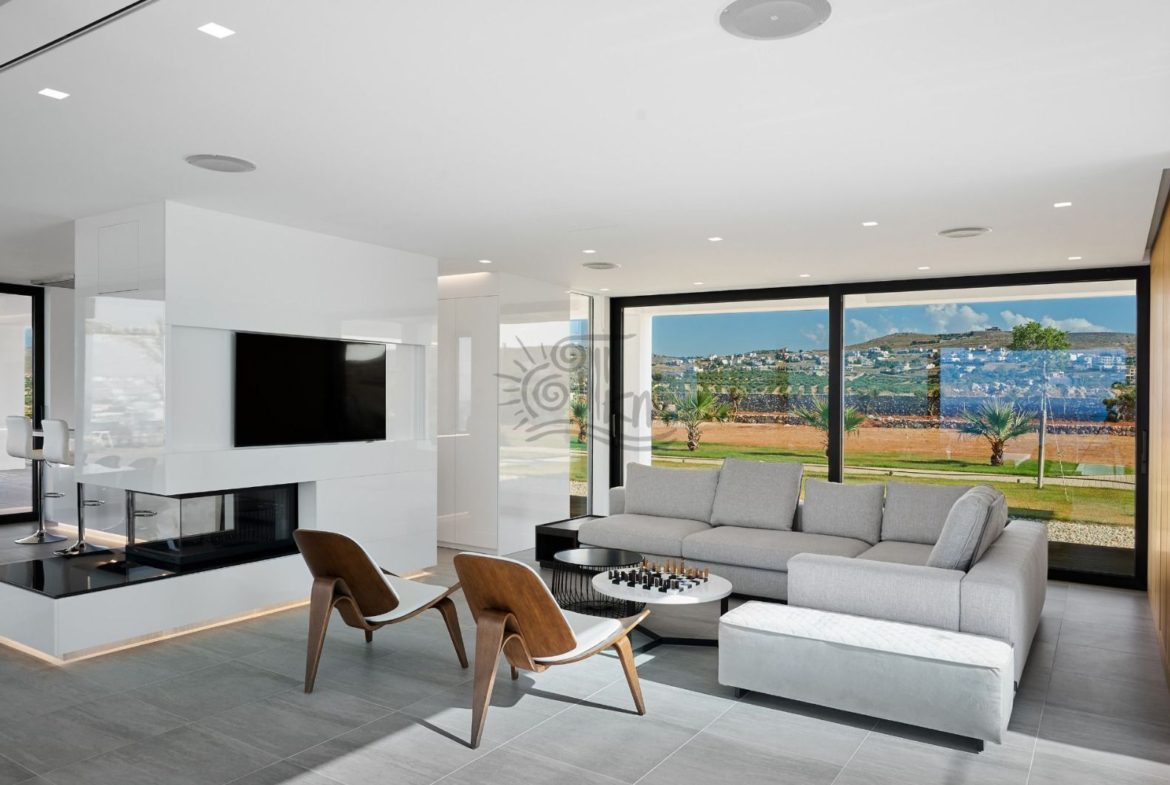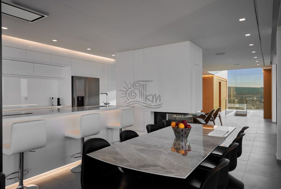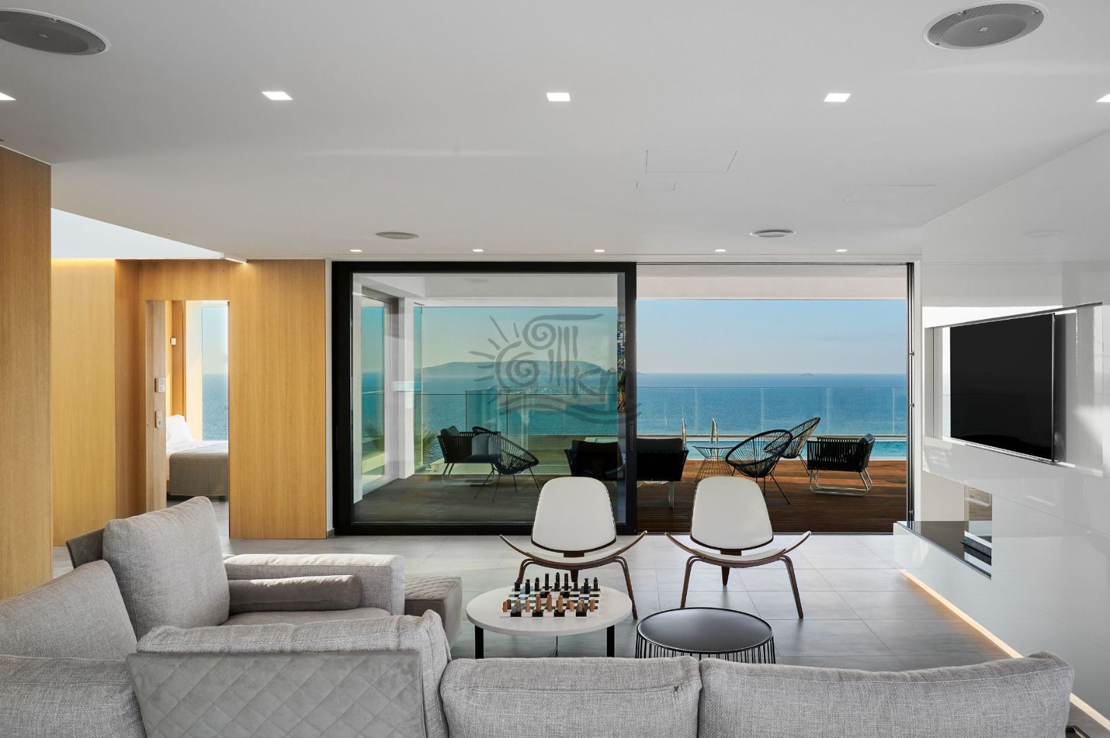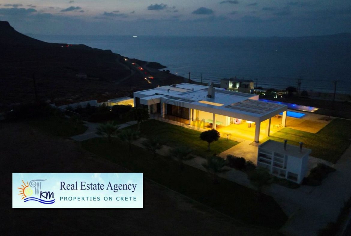 Heraklion. For sale is a 350 sq m ultra-luxurious villa on a 4,000 sq m plot with a unique unobstructed view of the sea. Specifically, it offers complete privacy and is just 8 kilometers from Heraklion international airport and just 2,500 meters from a sandy beach. It is arranged on two levels and has four master bedrooms, the largest of which has a unique view between the pool and the sea. On the first level, there is the open space with the kitchen and the fireplace, while there are the two bedrooms, the imposing patio from which the house is constantly illuminated and very large verandas with direct access to the pool and the surrounding area. In the landscaped surrounding area there is an outdoor dining area with a canopy, a garden with trees and shrubs, aromatic plants of Crete and a barbecue with a wood-burning oven. On the lower level there are two more bedrooms, a gym, a laundry room, with direct access to the gardens, the plot and the closed parking spaces. Finally, the house offers autonomous heating with a heat pump, a 50 sq m heated swimming pool with a heat pump, an alarm and monitoring system, three closed parking spaces, a perimeter stone fence, a lush landscaped garden, trees, shrubs, flowers and aromatic plants. It is an excellent choice either for home ownership or for tourist exploitation.