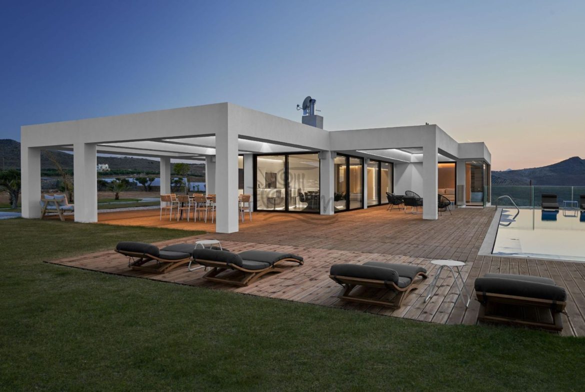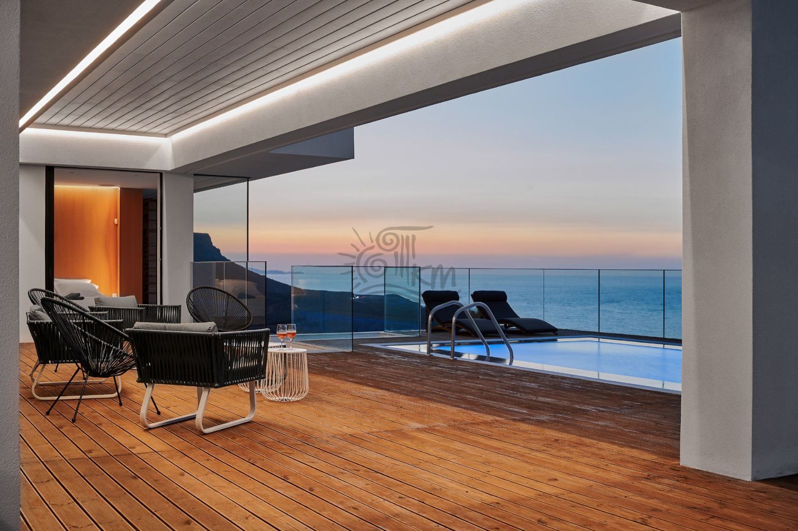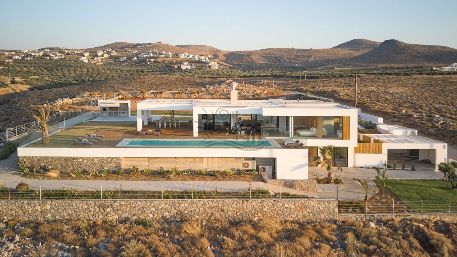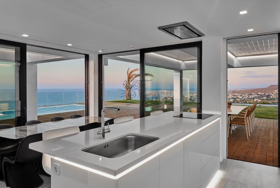 Heraklion. For sale is a 350 sq m ultra-luxurious villa on a 4,000 sq m plot with a unique unobstructed view of the sea. Specifically, it offers complete privacy and is just 8 kilometers from Heraklion international airport and just 2,500 meters from a sandy beach. It is arranged on two levels and has four master bedrooms, the largest of which has a unique view between the pool and the sea. On the first level, there is the open space with the kitchen and the fireplace, while there are the two bedrooms, the imposing patio from which the house is constantly illuminated and very large verandas with direct access to the pool and the surrounding area. In the landscaped surrounding area there is an outdoor dining area with a canopy, a garden with trees and shrubs, aromatic plants of Crete and a barbecue with a wood-burning oven. On the lower level there are two more bedrooms, a gym, a laundry room, with direct access to the gardens, the plot and the closed parking spaces. Finally, the house offers autonomous heating with a heat pump, a 50 sq m heated swimming pool with a heat pump, an alarm and monitoring system, three closed parking spaces, a perimeter stone fence, a lush landscaped garden, trees, shrubs, flowers and aromatic plants. It is an excellent choice either for home ownership or for tourist exploitation.